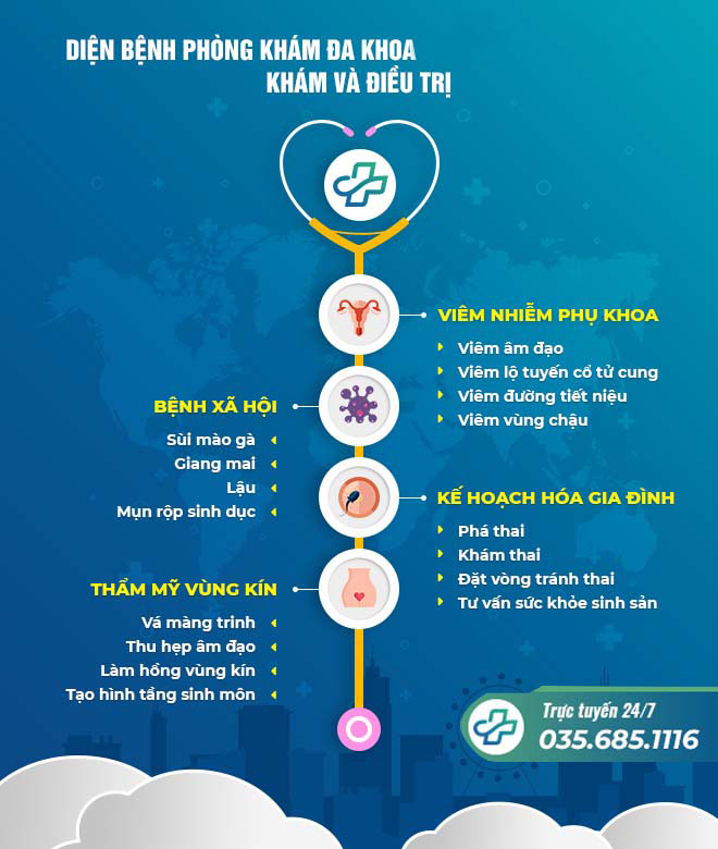 Phòng khám Đa Khoa HCM đã được cấp phép hoạt động bởi Sở Y tế TPHCM. Các diện bệnh phòng khám triển khai đa dạng, đáp ứng nhu cầu chăm sóc sức khỏe ngày càng cao từ chị em phụ nữ.